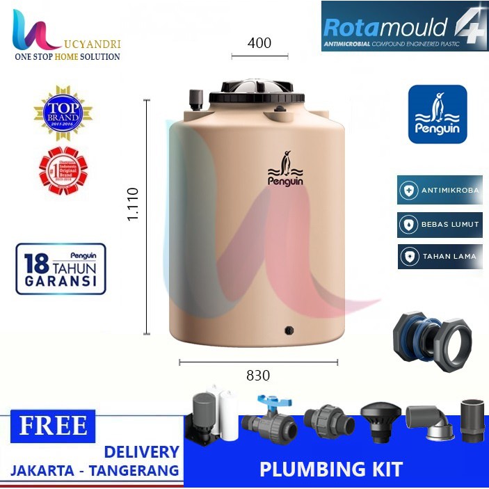 Untuk update harga tangki air penguin yang dapat kami sampaikan hanya sampai tipe tb 300 dengan kapasitas 3.100 liter dan untuk pemakaian penampungan air bersih bukan bahan kimia. Data diperbaharui pada 04 agustus 2021. Tangki penguin tipe tb 55 mampu menampung kapasitas air 520 liter. Free ongkir jakarta dan tangerang. Pengiriman gosend one day delivery Pemipaan yang diberikan secara gratis dengan tujuan untuk meningkatkan dan mempermudah pengalaman anda saat menggunakan tangki air penguin.<p>bulkhead dan plug penutup<p>berbahan upvc penguin yang kuat dan tahan lama, sebagai aksesoris standar yang sudah disesuaikan dengan ukuran pipa berstandar. Tandon air penguin tb 55 (520 liter) rota 3+. Harga tangki tandon toren air water tank set penguin tb 55 520 l biru tua. Jne 1 kg hanya kirim invoice saja, pengiriman toren menggunakan mobil engkel / pickup. Tangki/toren air penguin tb 110 anti lumut garansi resmi 18 tahunrp1.569.000 Toren tangki air penguin tb 32: Produk asli, original, dan branded dengan beragam brand official. Cari produk toren air lainnya di tokopedia.